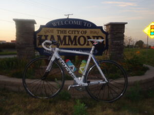 4AM comes after about 6 hours of sleep and I begin with a big breakfast and a final load up of all the gear I would have. I’d have my usual tools to fix anything major that would go wrong on the bike, but I would also carry a few extras along with an extra water bottle. I’m out the door at 5:15AM and it’s a quick 7 miles before I hit my second state of Indiana. The sun is just starting to come up as you can see in this picture.