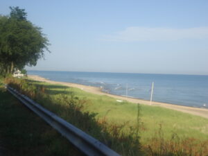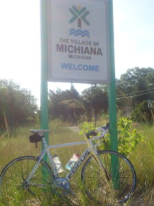 The route to Michiana MI takes you up a road called Lake Shore Drive. The road itself is pretty picturesque with hillside villas on one side and beachfront property and the shoreline on the other. On my cruise up this road at 8AM, people were out running, biking and just enjoying the outdoors. All of them had smiles and waves for me as I plodded along the rolling shoreline. Kind of reminds you of those seaside drives of the coast doesn’t it?
