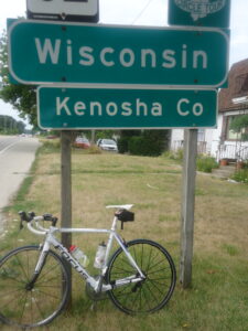 After a 30 minute rest and some lunch I pushed north up the bike path on the lakefront and headed into the burbs to play in our teams usual training grounds. Well, this is where the ride “started” to get hard for me. No matter how much I ate and drank, my power levels slowly started to come down as time progressed. I would take a break every hour or so, which recharged me to an extent, but it was getting really hard to convince myself that I was going to make it back home. Well, after 160 miles and 9 hours of riding, I finally got to my 4th state!